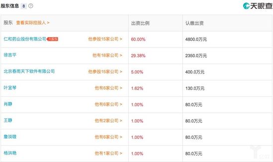 同月,仁和藥業發布補充公告顯示,此前叮當醫藥與春雨醫生已達成戰略合作,春雨醫生的大數據為叮當醫藥采購品種的選擇提供精準指導服務,同時,叮當醫藥為春雨醫生的線下診所提供藥品配送。2015年6月,叮當醫藥控股股東徐吉平女士將其持有股本400萬股(占注冊資本5%)按成本法轉讓給北京春雨天下軟件有限公司。